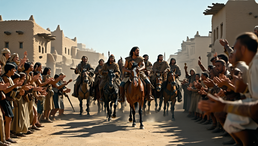 Returning home, he entered the village with his head held high. His eyes panned his neighbors for recognition. And then he saw her. His daughter—the only child of his late-born hope—burst from the house. She had her tambourine in her hand, her circle of friends dancing behind her. She was life and laughter and music in motion, filled with promise and possibility.